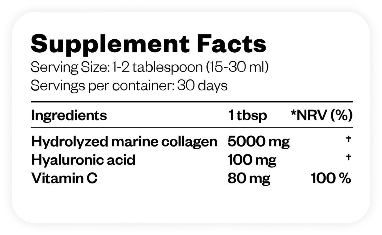 - 1 tbsp, which is 5 g of marine collagen, for general maintenance of skin health and elasticity.
